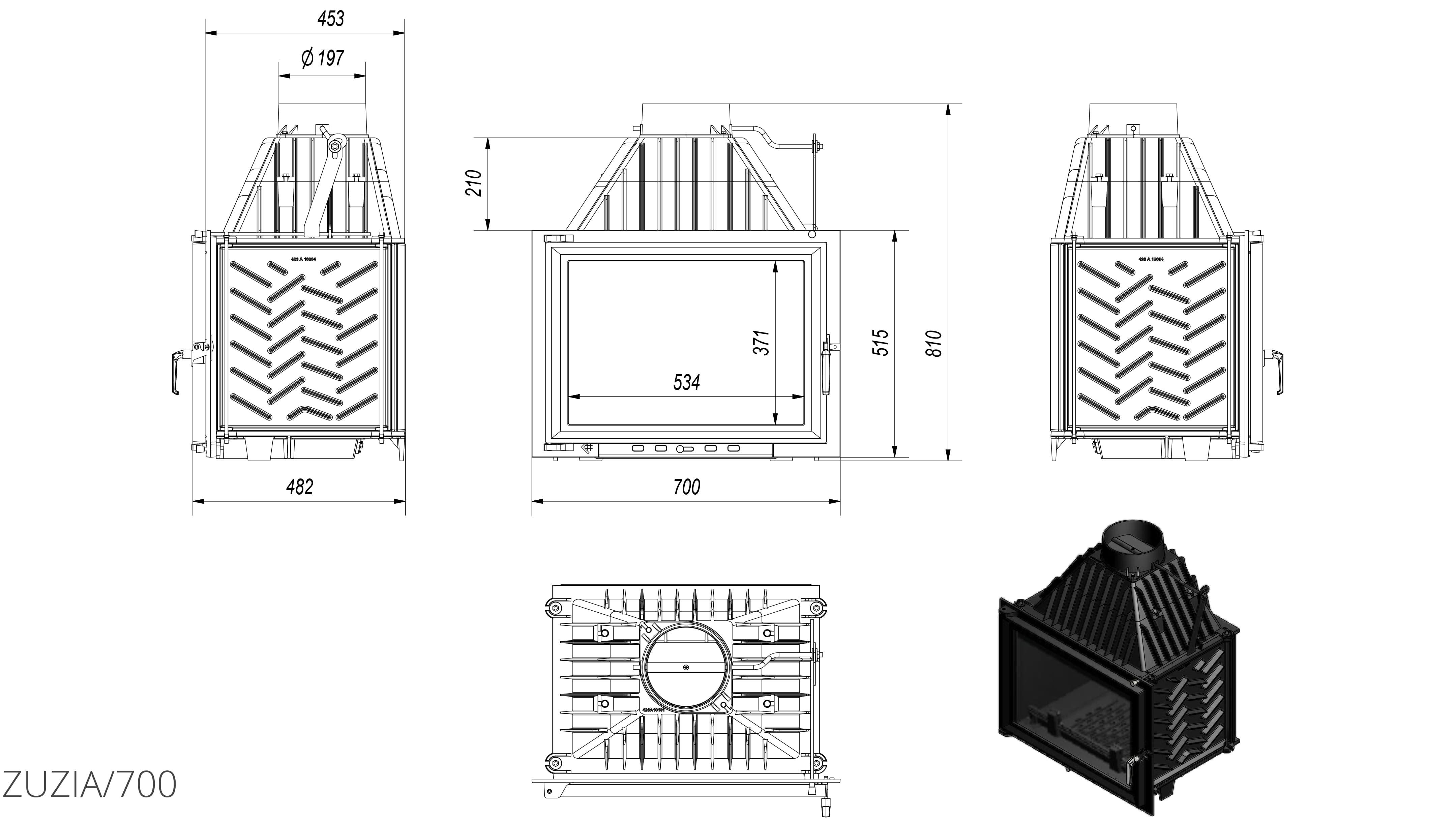 Классическая передняя часть топки выложена жаростойкой керамикой, которая выдерживает температуру до 660 °C.