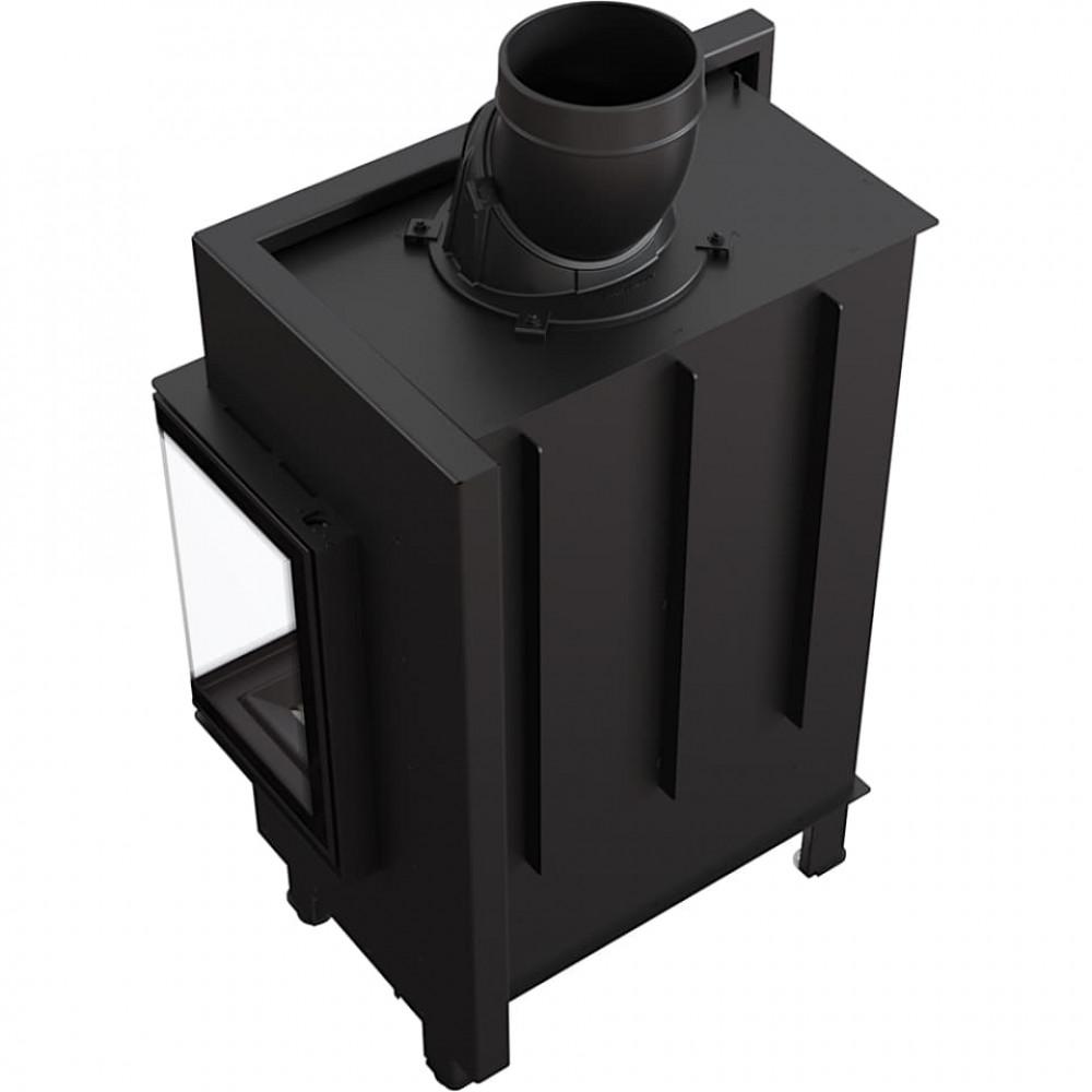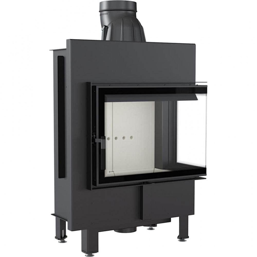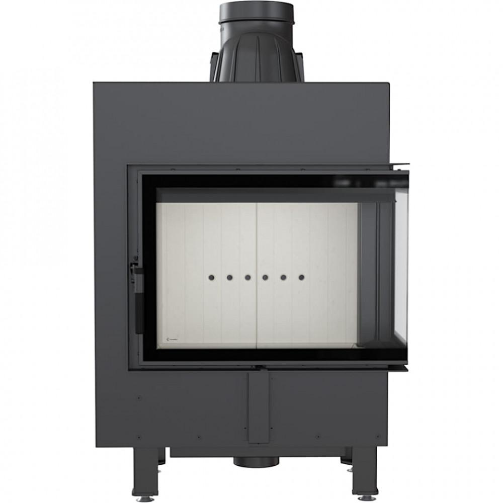 Топка интересной формы, с боковым стеклом. Благодаря двустороннему созерцанию огня и изящной передней рамке она отлично подходит под стилистику современных интерьеров. Этот тип камина часто выбирают для открытых помещений, в которых сочетаются различные пространства, например, гостиная со столовой. Благодаря использованной в камине специально профилированной плите, он помещает большее количество древесины. Современные решения, применённые в устройстве, гарантируют энергосбережение и беспроблемное использование и чистку.