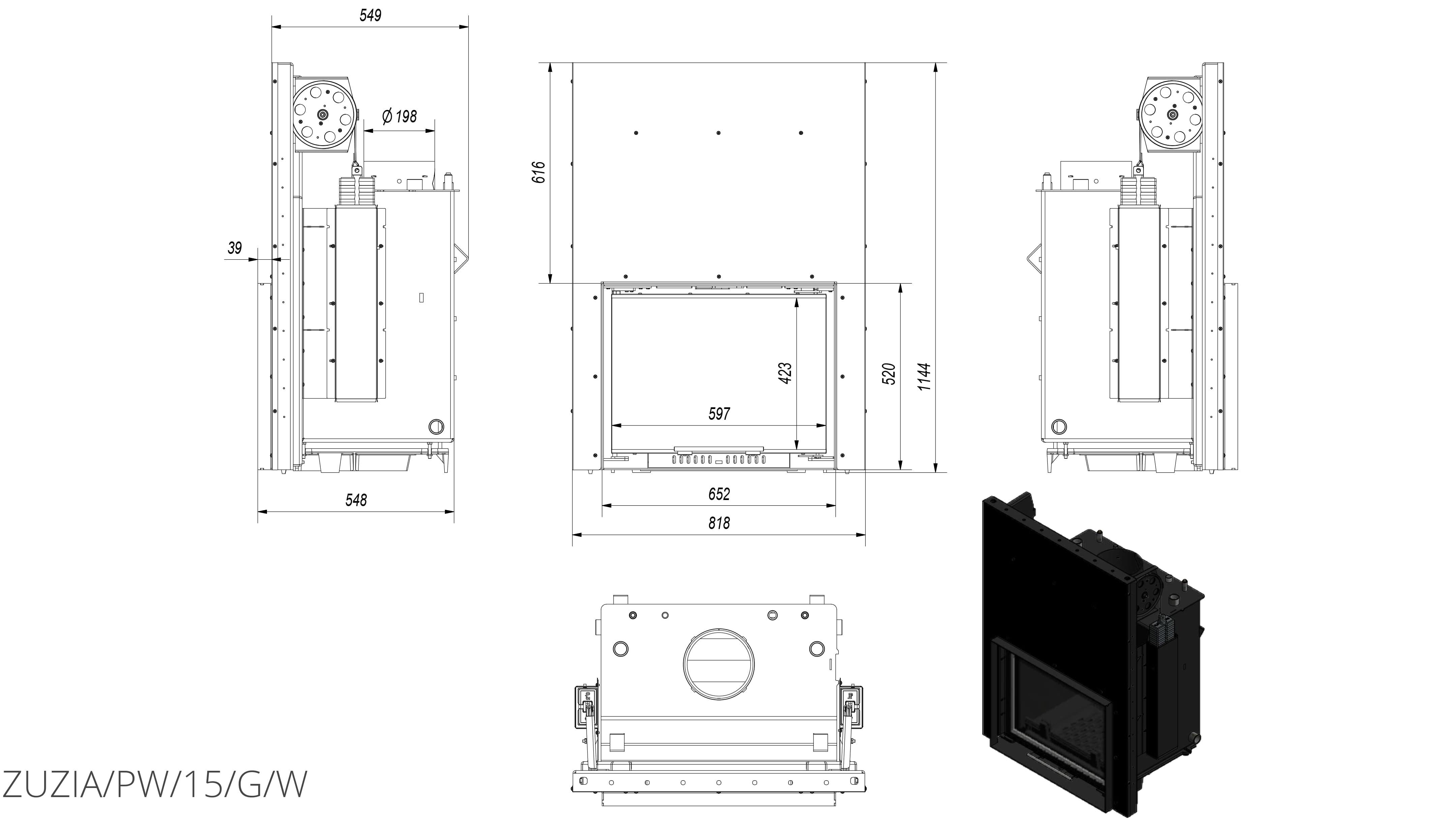 Двойная система открывания дверец вверх (ГИЛЬОТИНА) и в сторону. Дверцы, что поднимаются и опускаются, облегчают наполнение древесиной, а механизм, который позволяет боковое открывание, позволяет очистить стекло более эффективно.