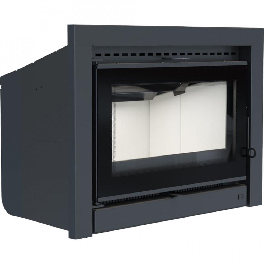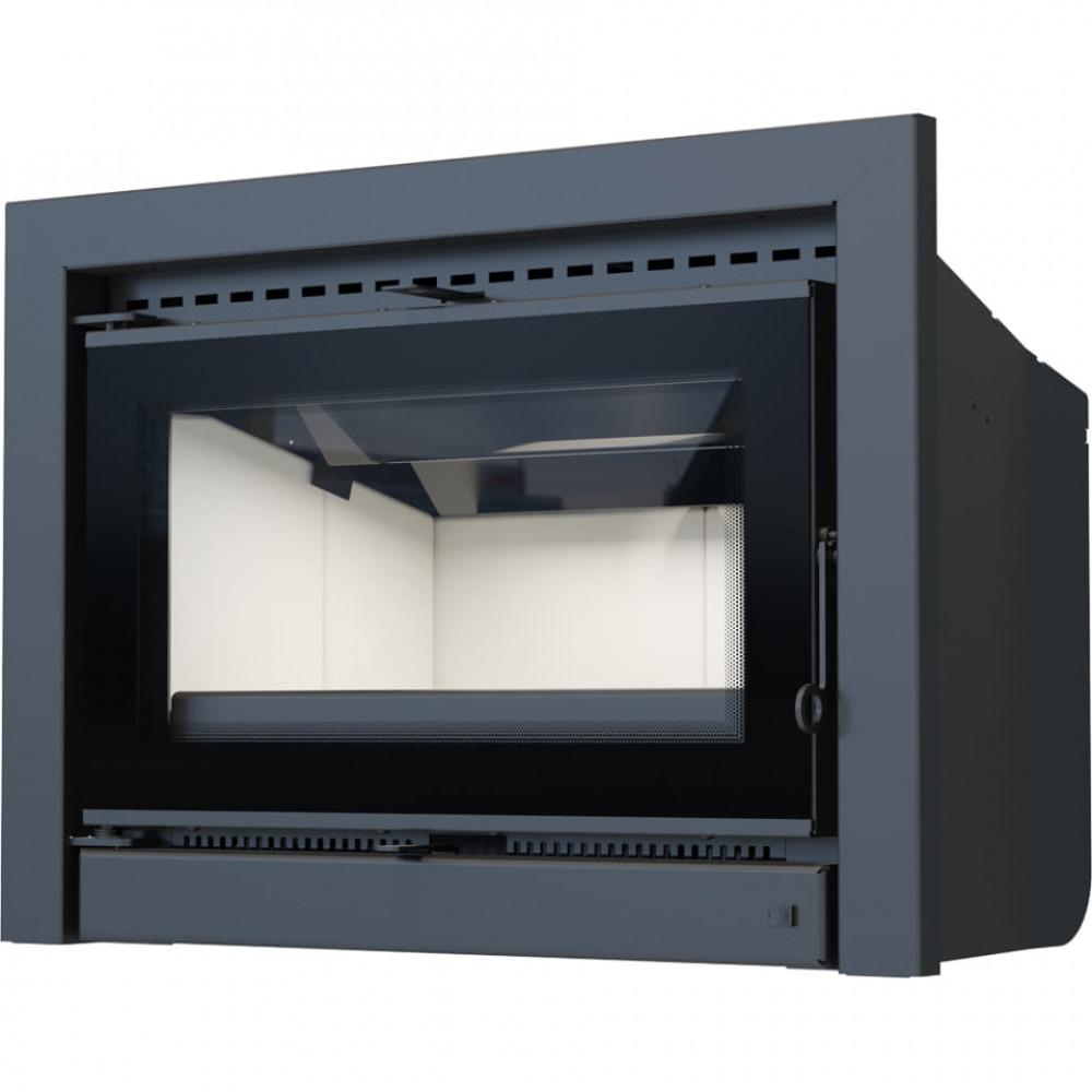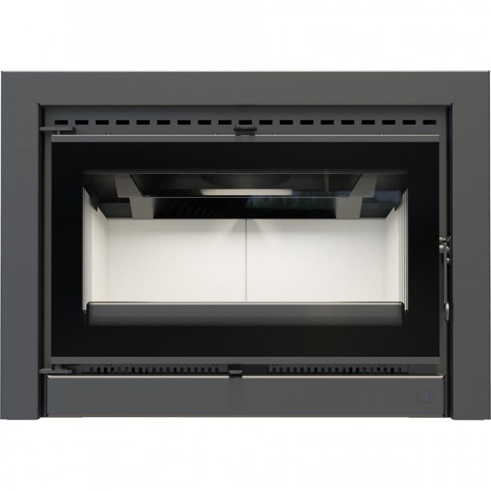 Кассета оснащена единым декоративным стеклом, благодаря чему она выглядит элегантно и современно. Применение такого решения оптически увеличивает переднюю часть топки и подчеркивает созерцание огня. Дверцы топки оборудованы удобной ручкой.