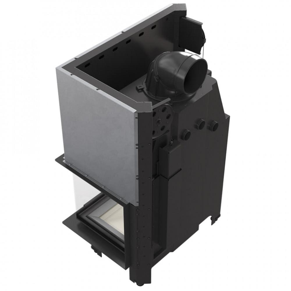 Высокий переход из камина в дымоход и размещены поперек водяные дефлекторы увеличивают поверхность теплообмена между топкой и окружающей средой. Понижение температуры дымовых газов приводит к увеличению мощности устройства.