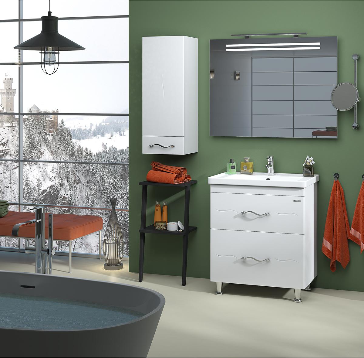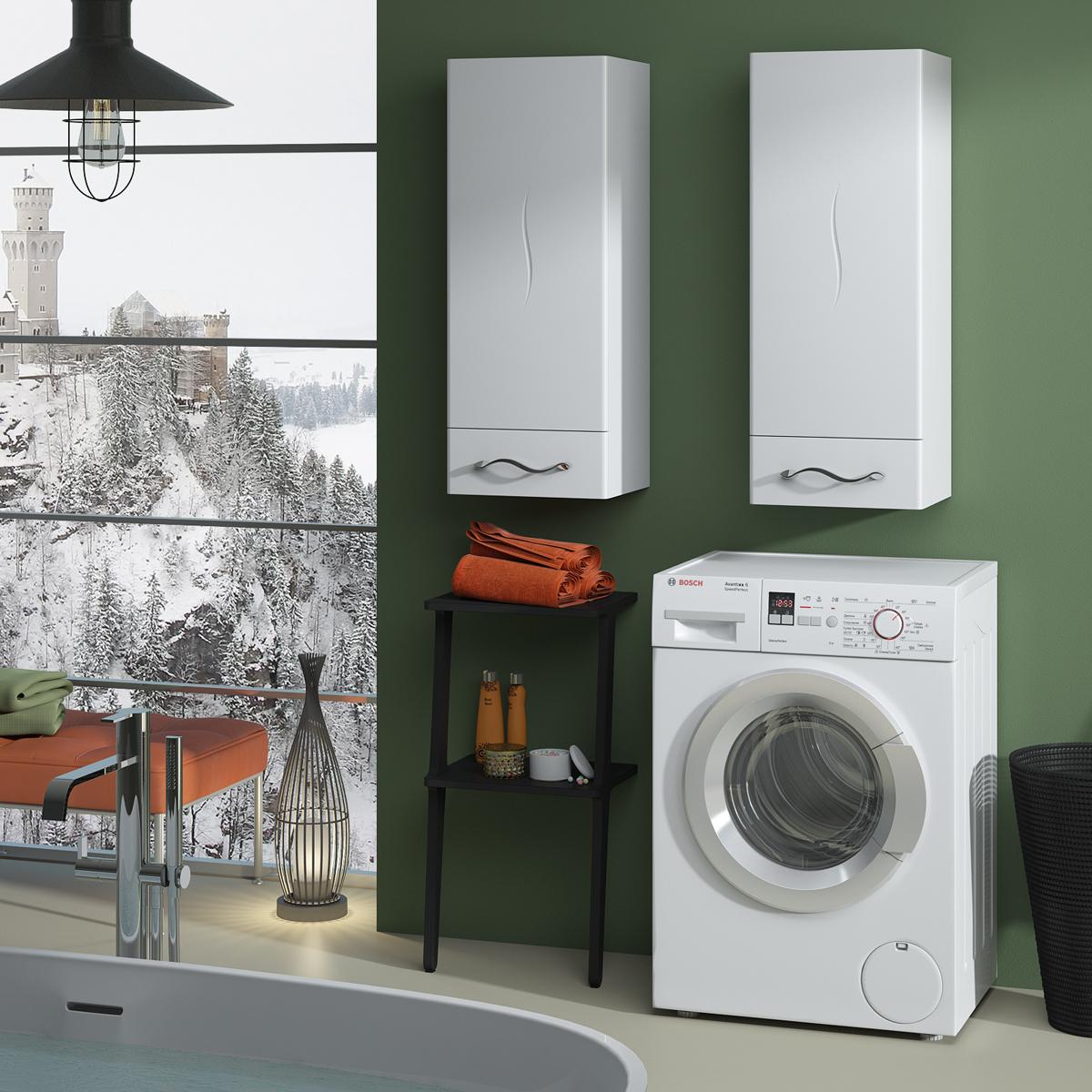 Полупенал изготовлен из высококачественного МДФ и окрашен краской итальянского производства Sayerlack. Данный элемент мебели экономит простаранство ванной комнаты, если нет достаточного свободного места. Мы предлагаем приобрести полу-пенал и разместить его над стиральной машиной или в другом месте.