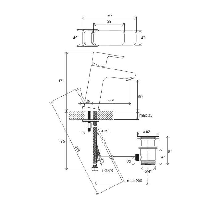 •    открывание стока: с тросиком и сточным комплектом