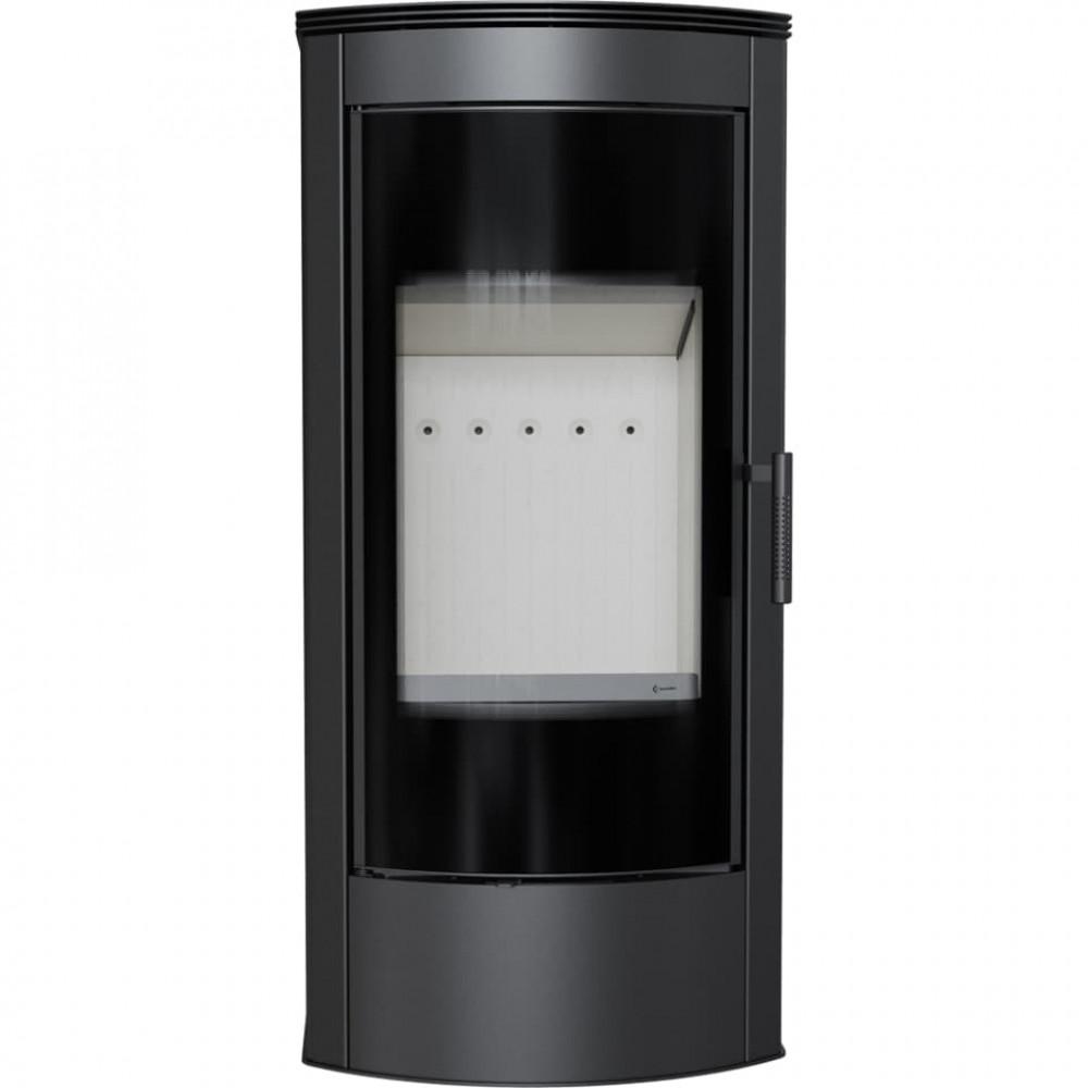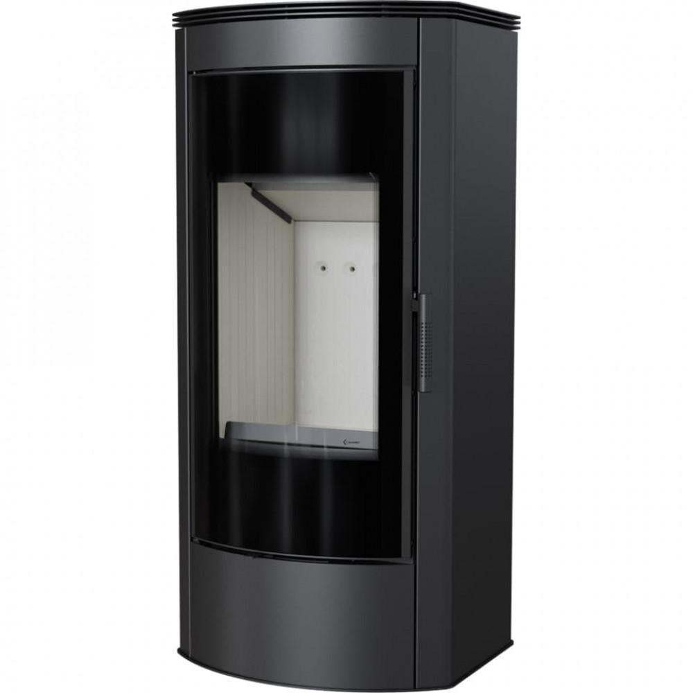 Печь привлекает внимание своей оригинальностью и чистотой формы, а прекрасное видение огня, которое видно из закругленного остекления, порадует всех.