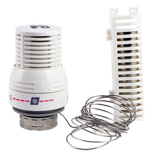 Принцип работы: изменение комнатной температуры влияет на объем жидкости, содержащейся в емкости термостатической головки. Изменение объема вызывает перемещение внутреннего механизма с соответствующим закрытием или открытием клапана и, следовательно, модуляцией подачи поступающего в радиатор теплоносителя.