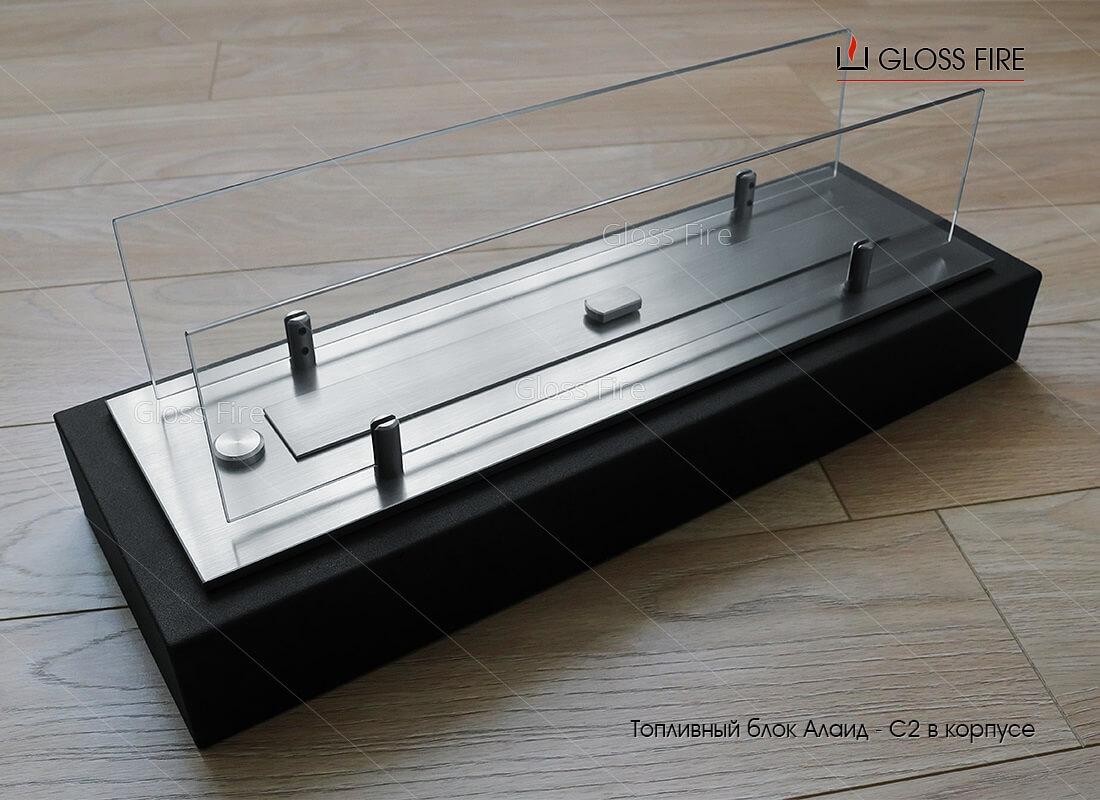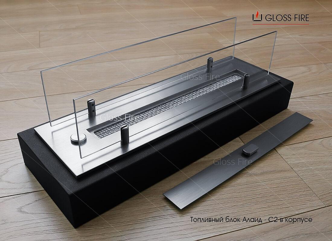 Камин заполнен керамическими, удерживающими этанол абсорбирующими волокнами. Благодаря этим волокнам утечка топлива, хлопки и вспышки камину не страшны.