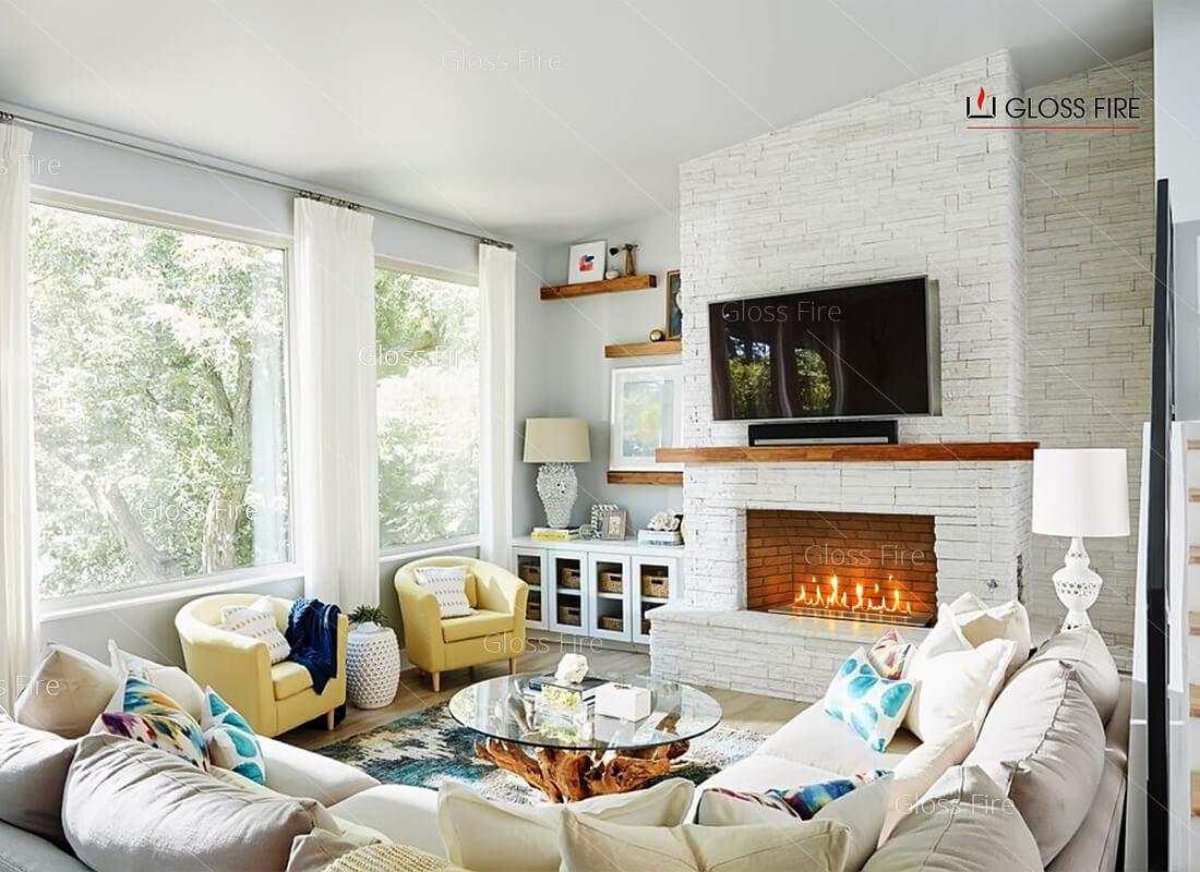 Камин заполнен керамическими, удерживающими этанол абсорбирующими волокнами. Благодаря этим волокнам утечка топлива, хлопки и вспышки камину не страшны
