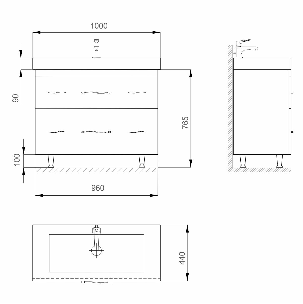 Напольная тумба изготовлена из высококачественного МДФ и окрашена краской итальянского производства Sayerlack.