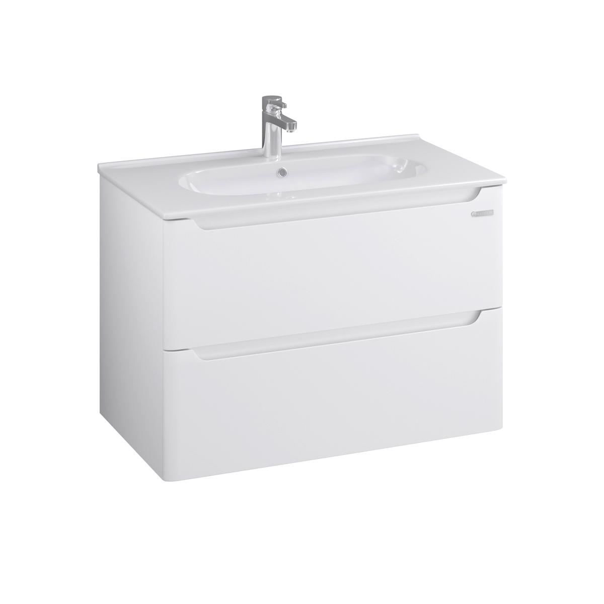 У данной коллекции несколько ключевых отличий: первоклассный импортный керамический умывальник (Испания), внутреннее наполнение ящиков в цвете темно-серый графит, толстые фасады из 19мм МДФ, боковины МДФ. Еще одно уникальное отличие - съемная панель в тумбе за фасадом, которой можно самостоятельно придать любую окраску в стиле вашей ванной комнаты (камень, бетон, дерево, однотонные цвета и т.д.).