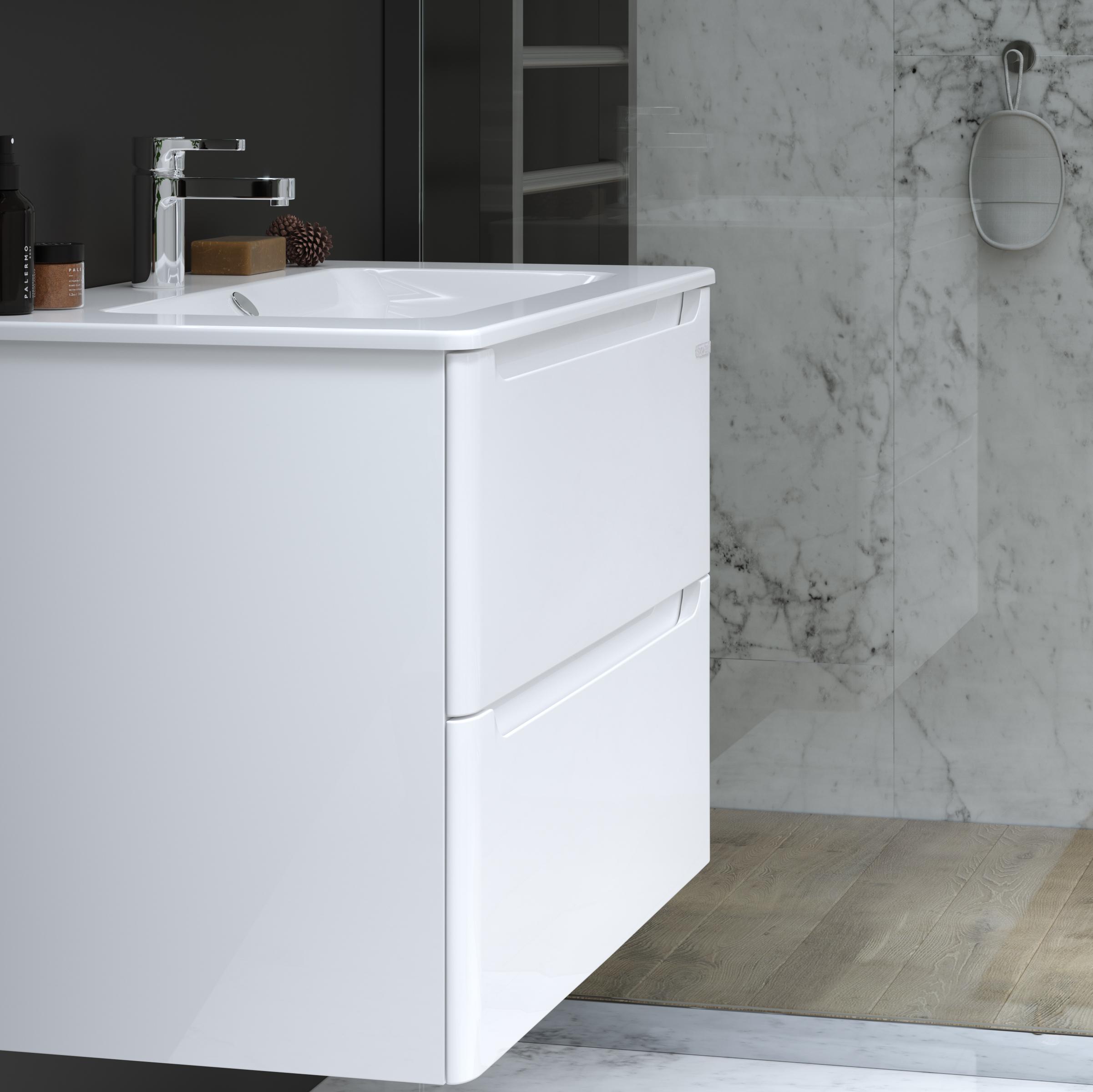 Данная коллекция выпускается без ручек, в современном минималистическом дизайне, но с максимальным комфортом для пользователя в виде естественного хвата рукой. Тонкий умывальник без свесов над тумбой, идеально вписывается в общий стиль коллекции. Лучшая фурнитура для этой коллекции: крепления подвесной мебели Camar (Италия), направляющие системы и петли с мягким закрыванием Blum (Австрия).
