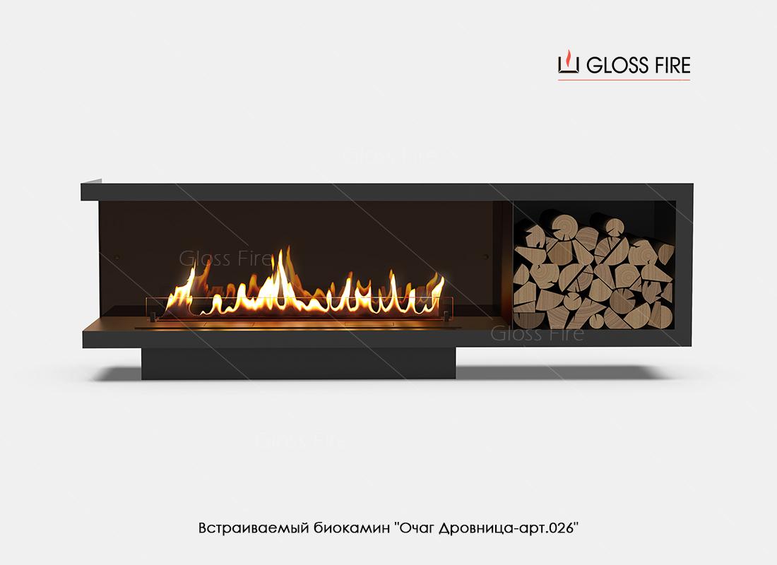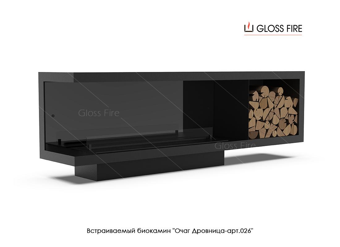 Описание встраиваемого биокамина "Очаг Дровница-арт.026" ТМ Gloss Fire